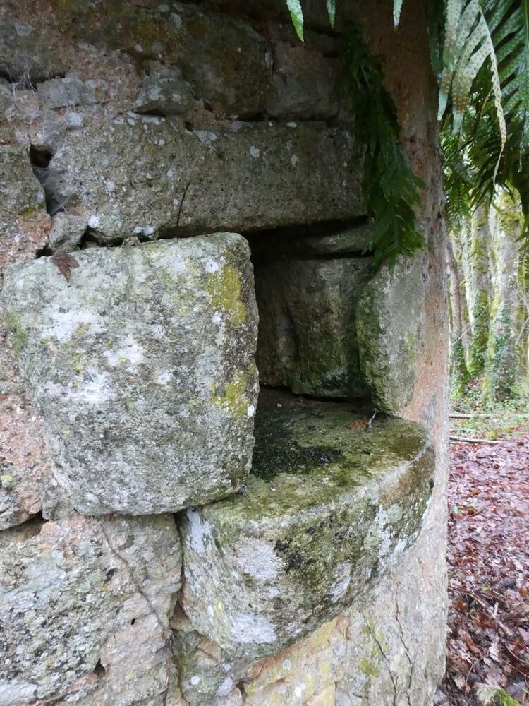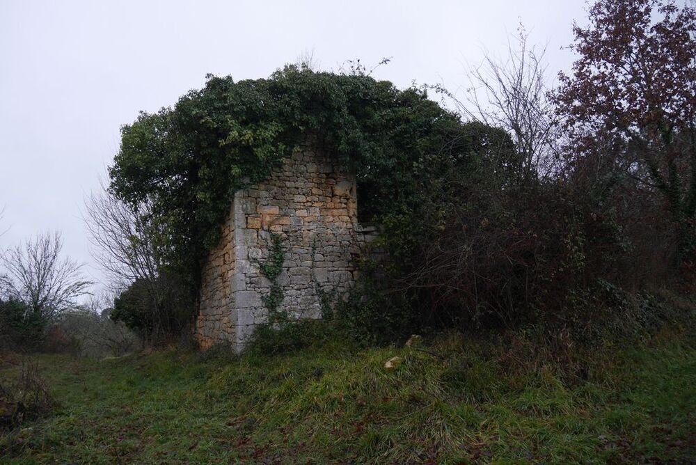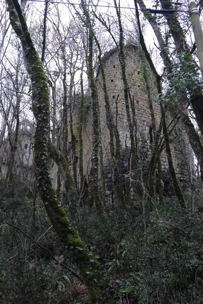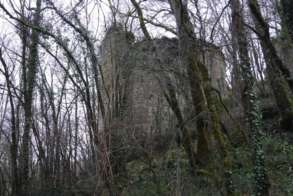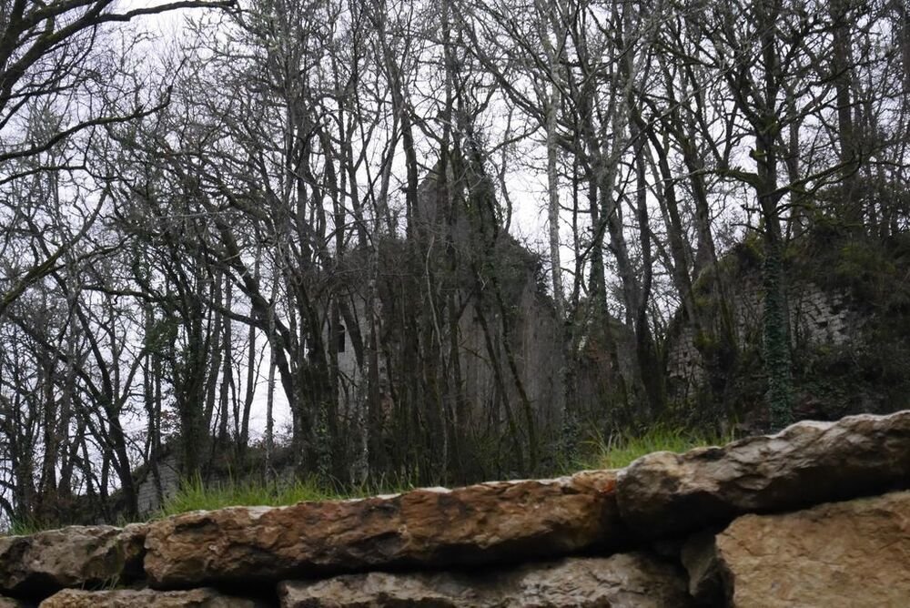 Dépassant l’ancien presbytère rénové nous arrivons aux ruines fantomatiques du castrum de Pestillac et de sa chapelle castrale.