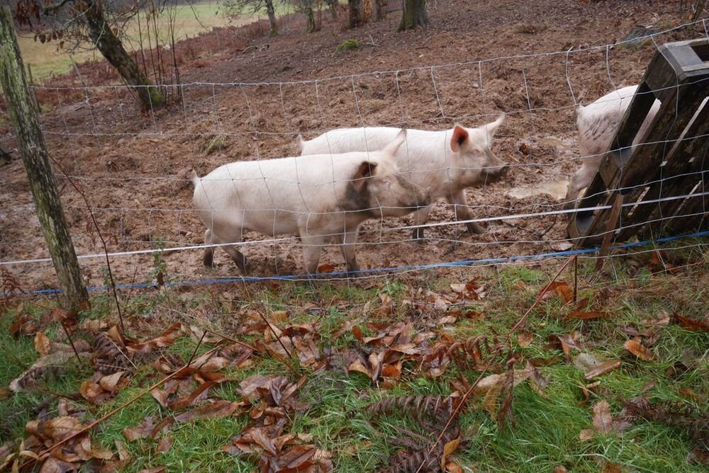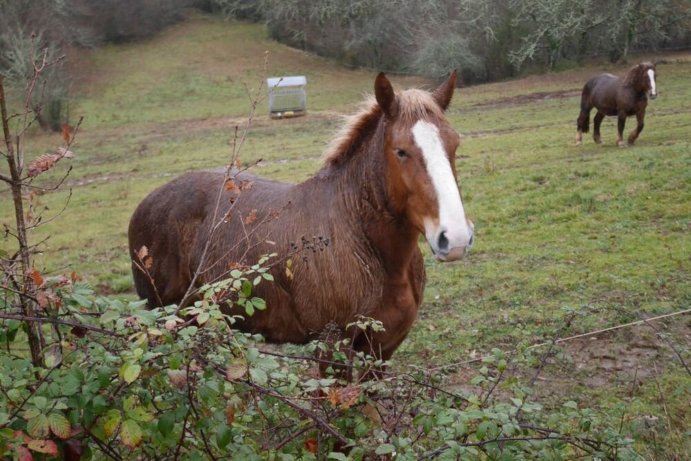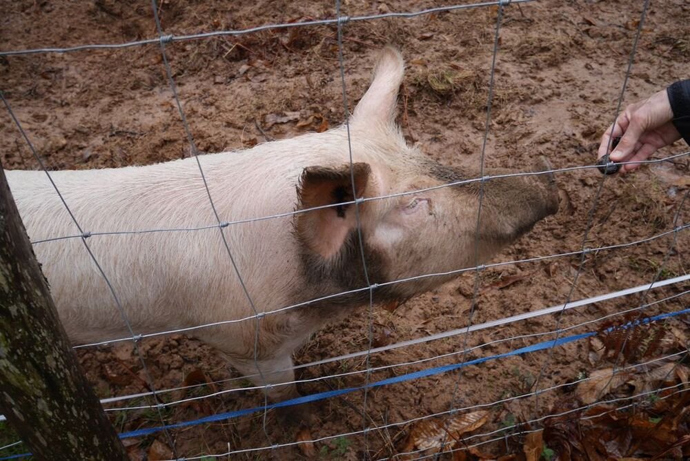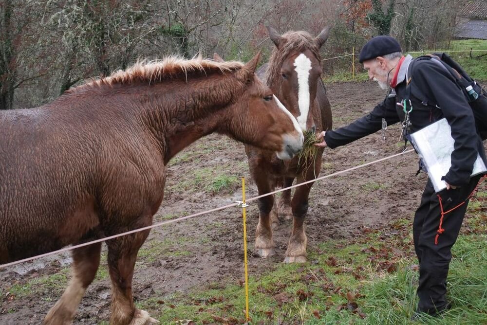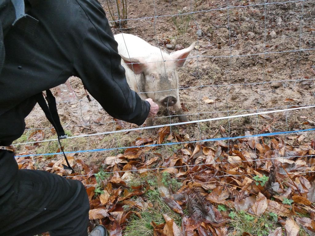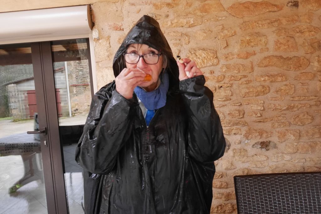 Prenant la direction sud, croissant des cochons roses, intéressés par les châtaignes glanées au sol, nous arrivons au hameau des Espinards, où Isabelle et Daniel nous offrent pour nous réconforter une délicieuse galette.