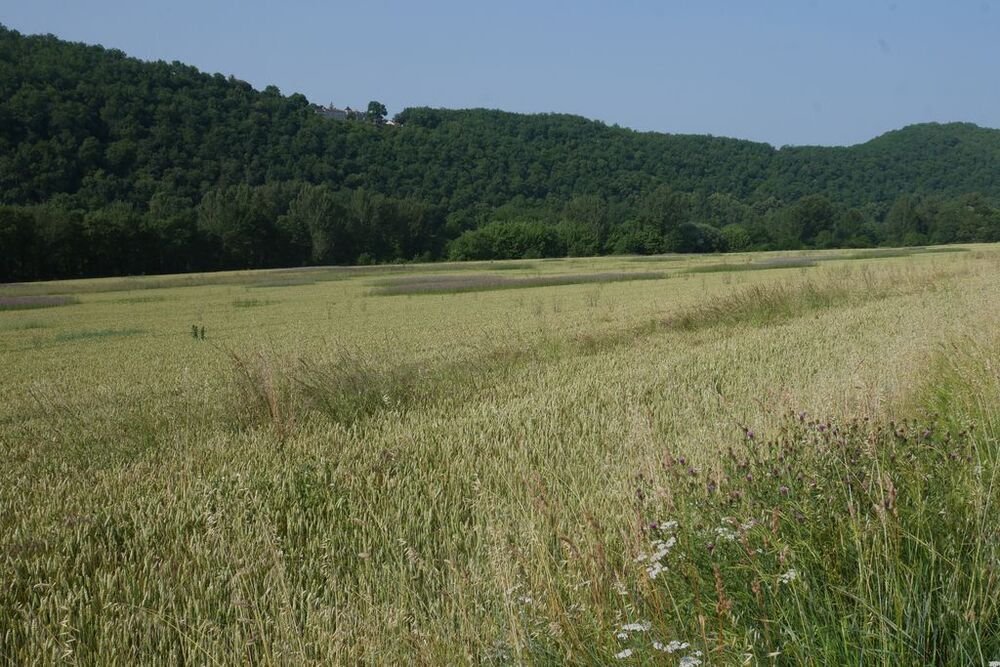 Place à l’activité sportive : c’est un circuit d’un peu plus de 5 km qui est proposé à nos marcheurs. Nous partons du bourg pour nous diriger plein Est, par un petit sentier herbeux qui descend vers le Lot.