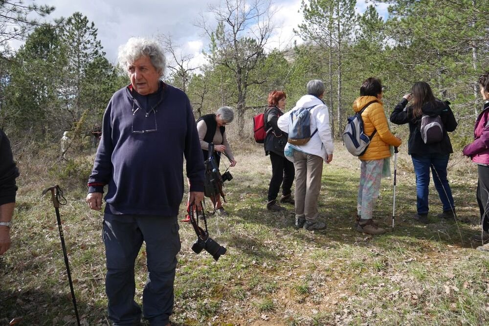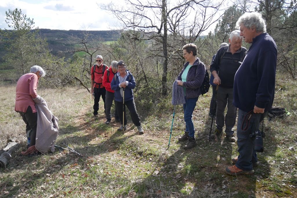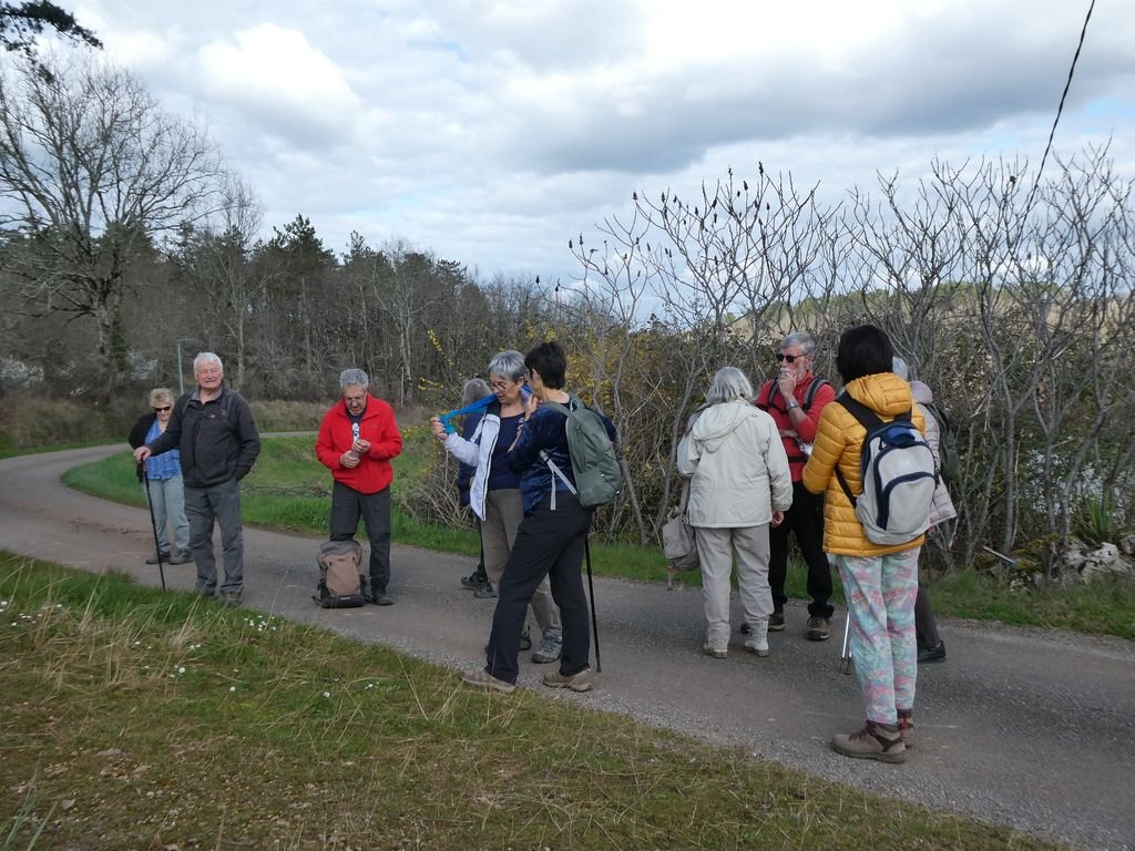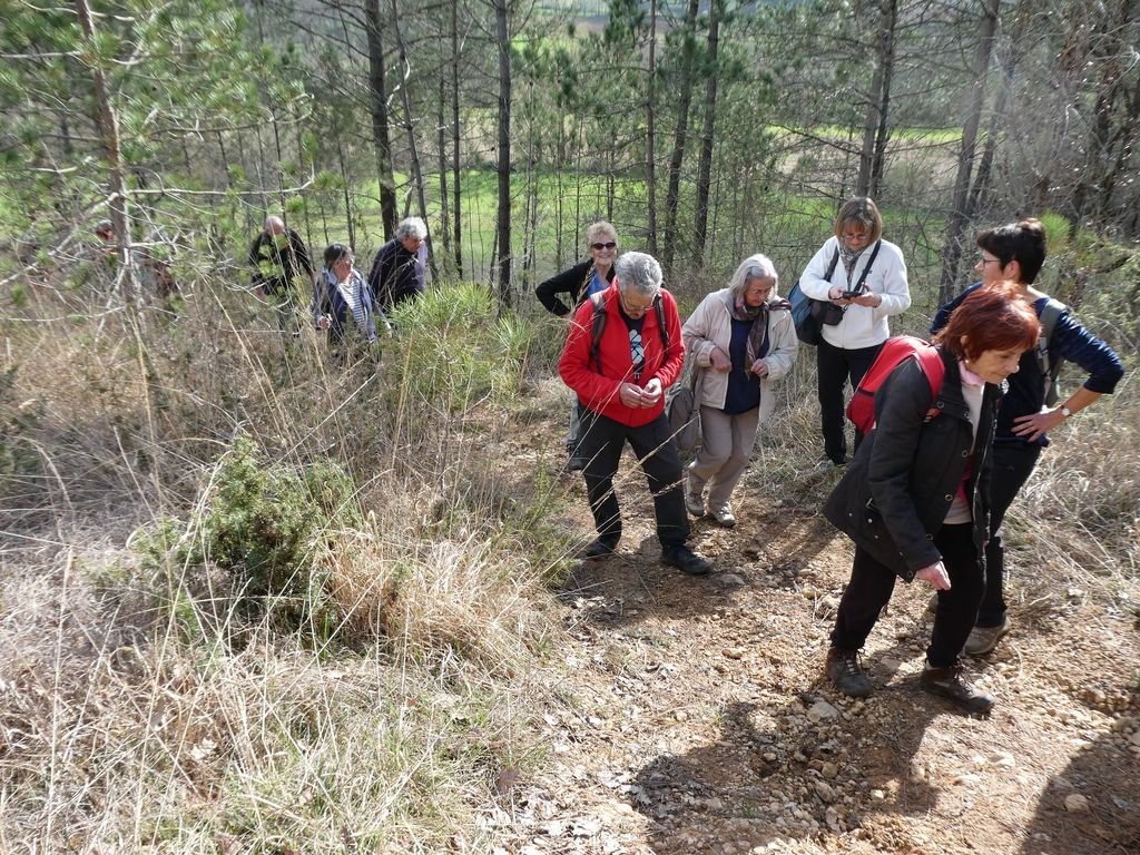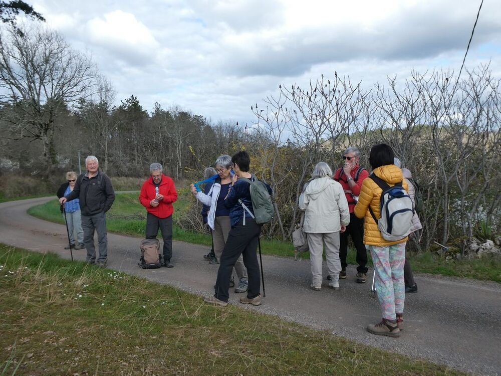 Nous sommes 20 à profiter de la balade. Nous descendons le long d’un sentier bordé de pervenches sauvages, toutes fraîches.