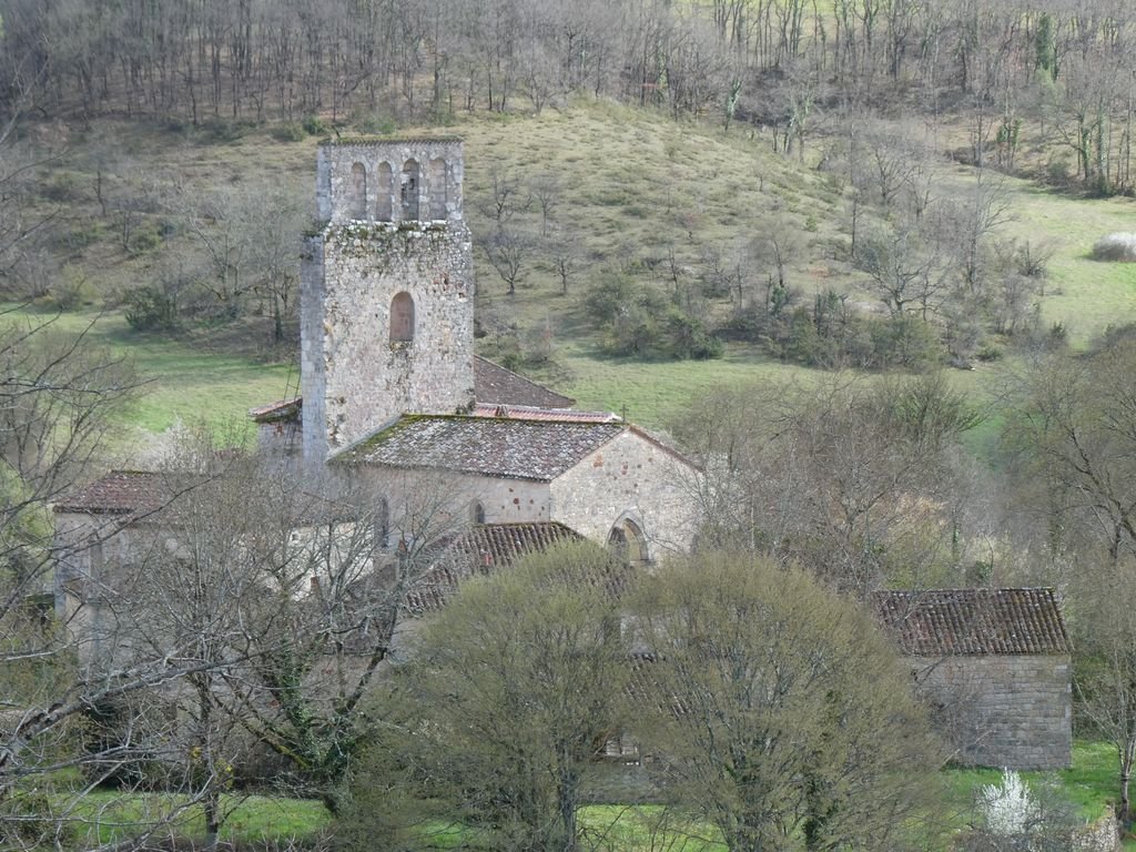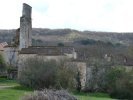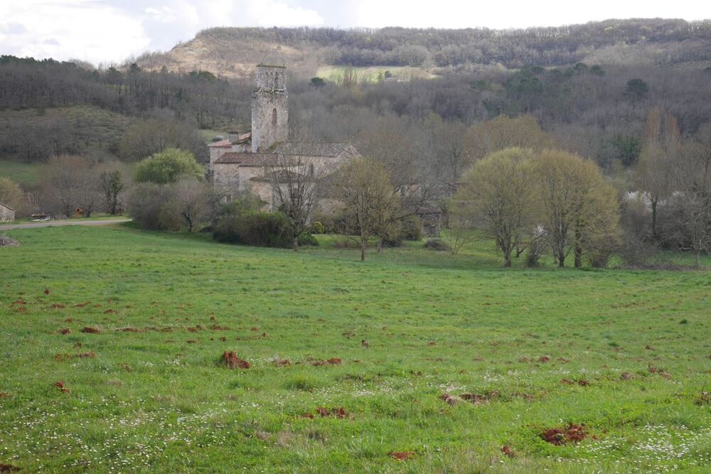 Nous continuons notre chemin en passant tout près de l’église de Ségos. Puis nous remontons vers le village le long du pech Carlat, dont la terre rouge et quelque peu boueuse s’accroche à nos godillots.