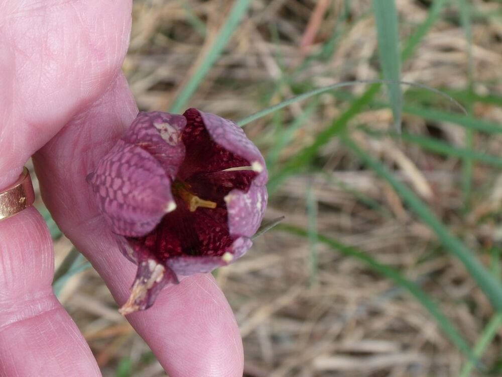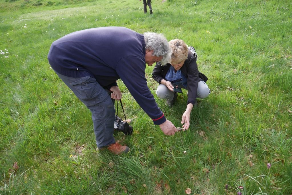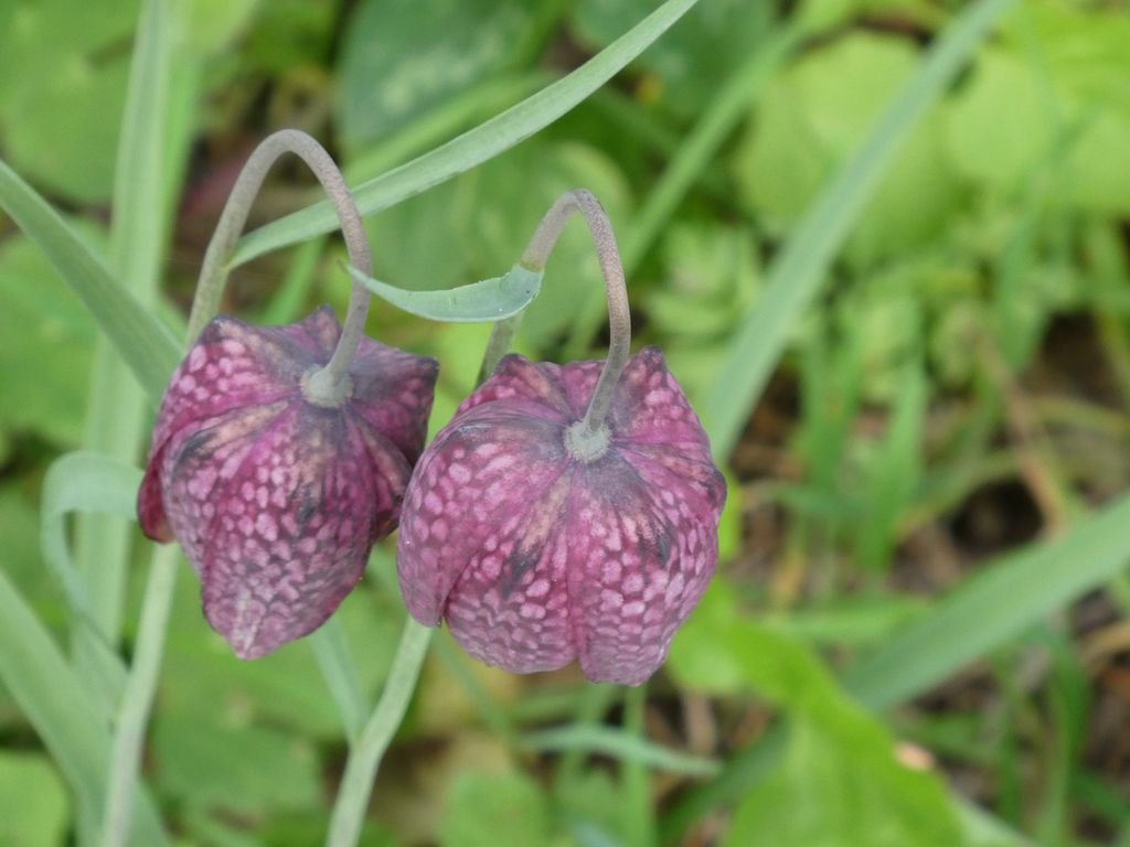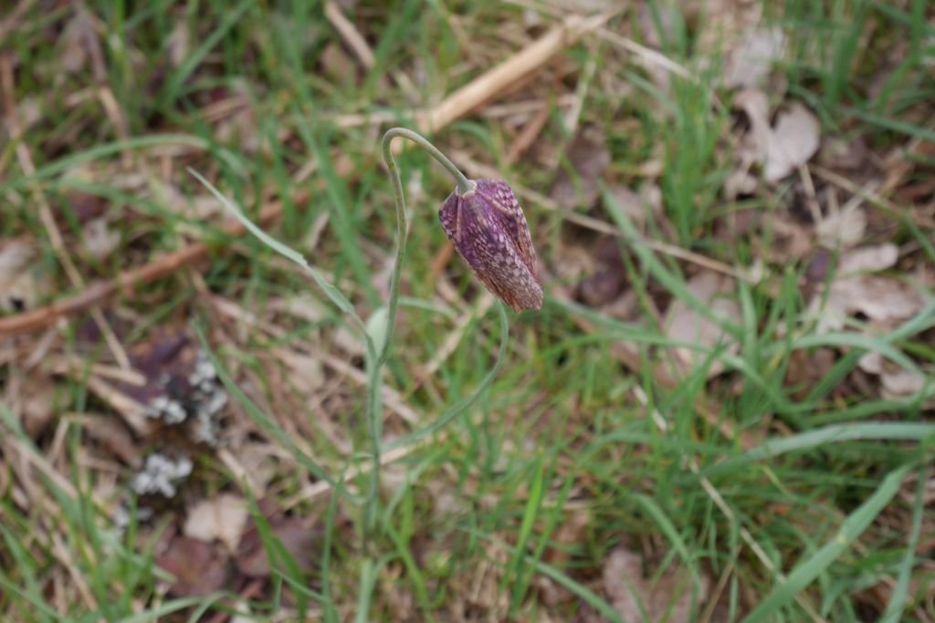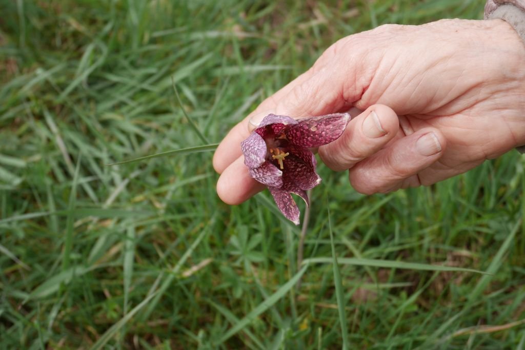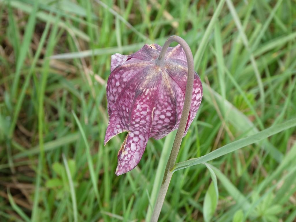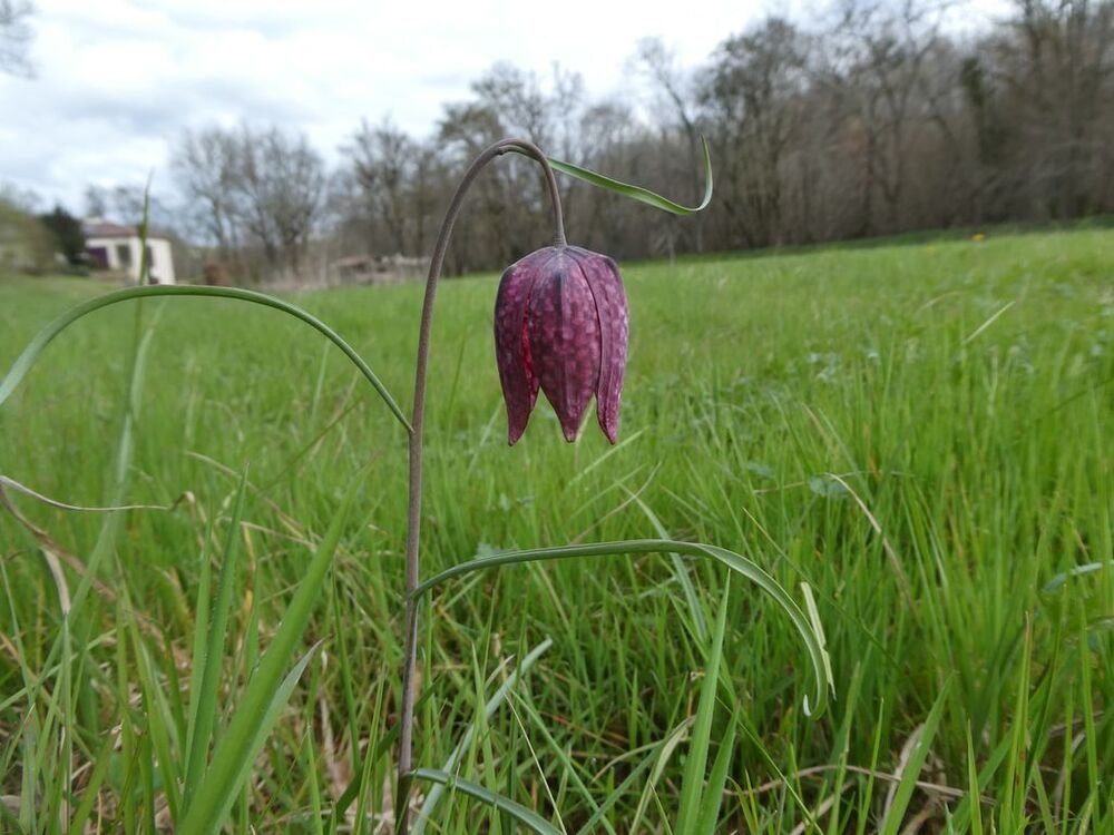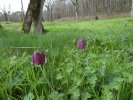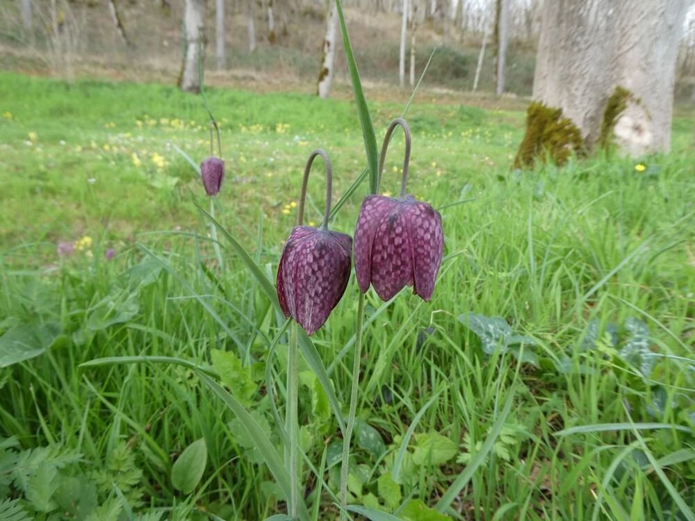 Nous parvenons sur le spot où se trouvent les fritillaires pintade, (Fritillaria meleagris), les plus communes. Elles sont bien moins nombreuses cette année, mais le plaisir de les découvrir est toujours aussi vif !
