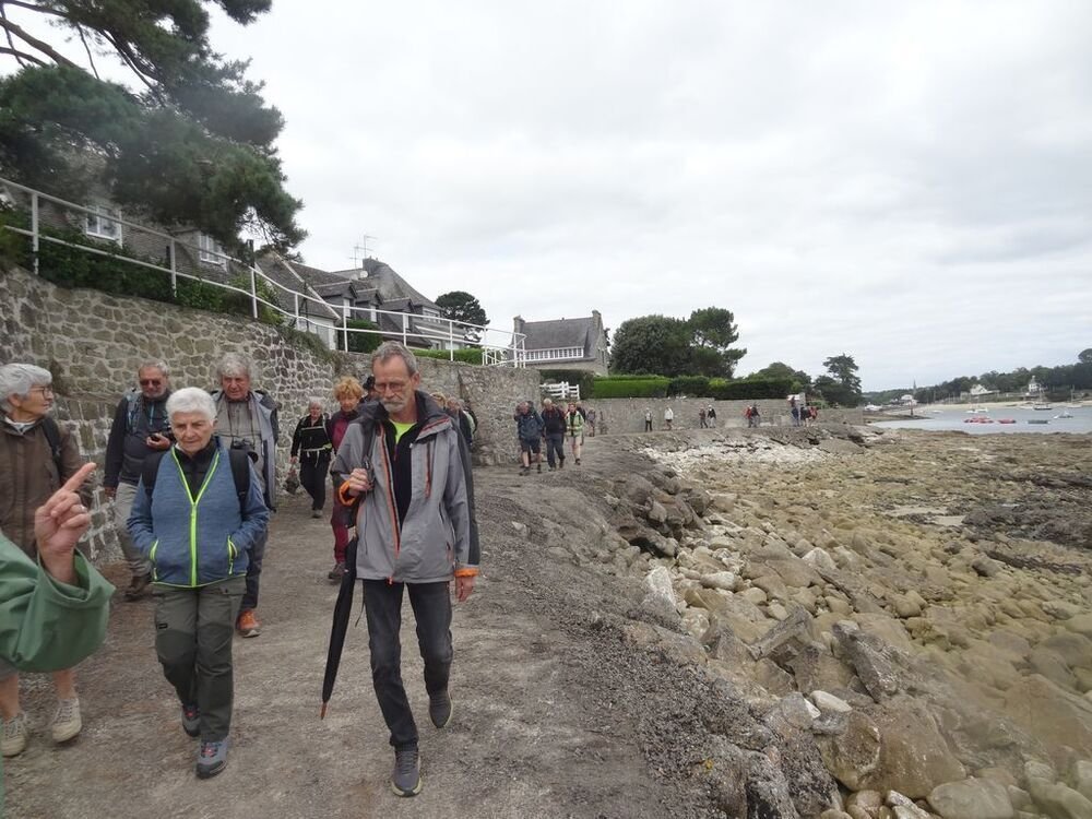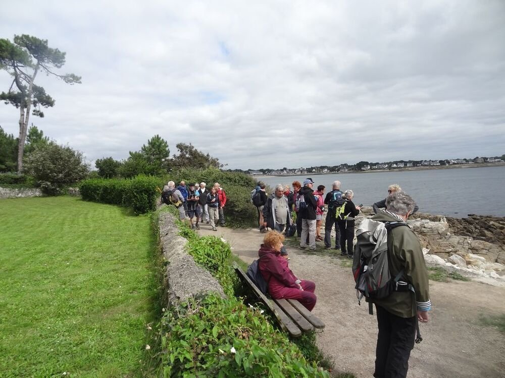 Le parcours de l’après midi nous a conduit vers la pointe de Combrit avec le groupe 1. Après la visite du fort, retour au parking, puis visite de sainte Marine avec son port, son arbre remarquable, sa chapelle et son ancre.