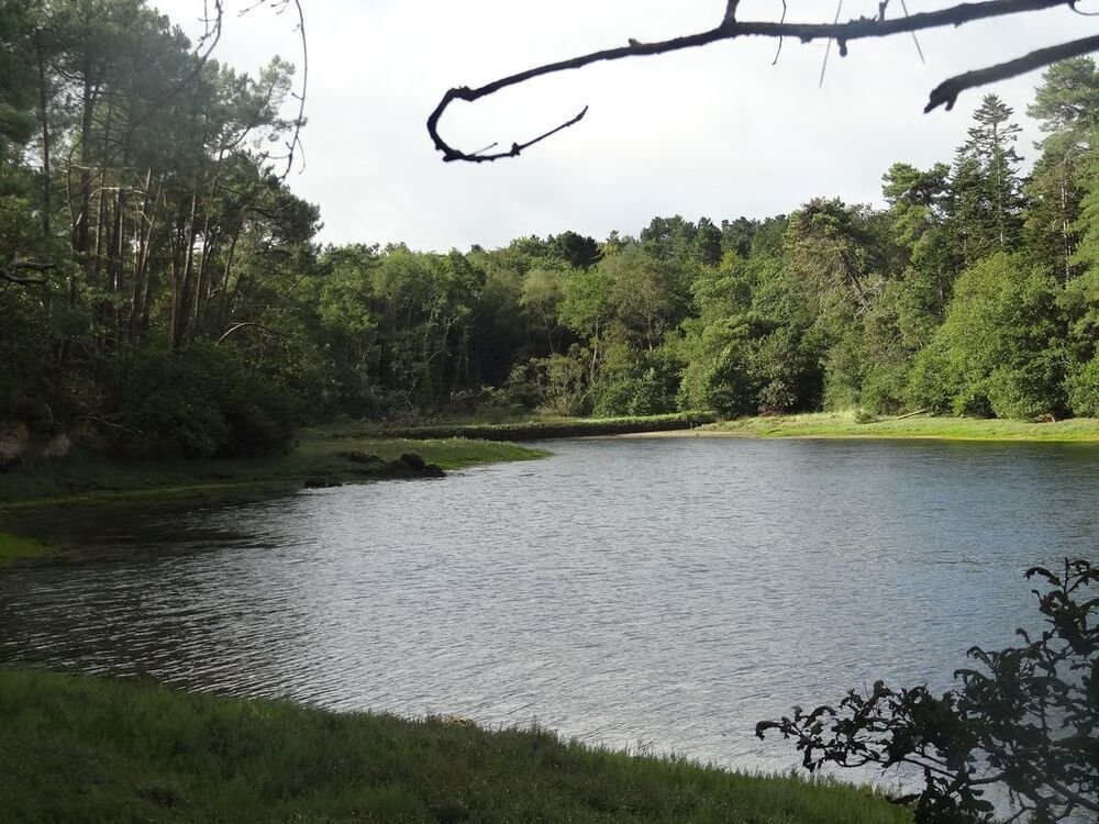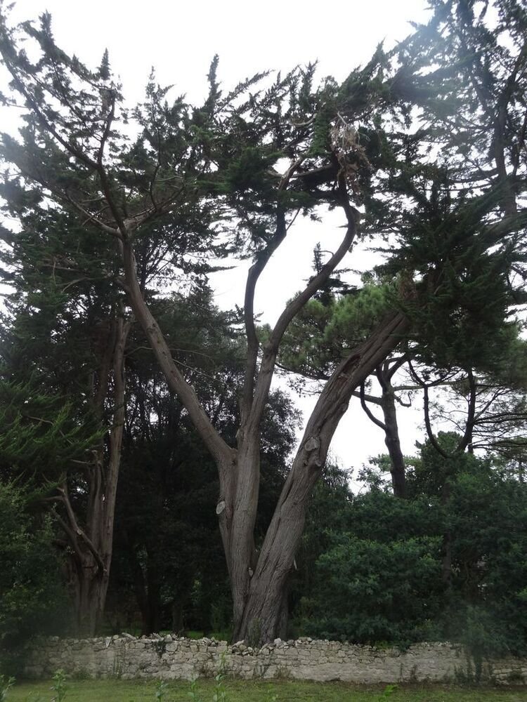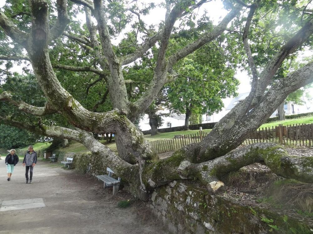 – L’arbre remarquable sur le port de Ste Marine, est un chêne pédonculé, Quercus robur. Son âge n’est pas indiqué. Son tronc a été intégré dans le quai Jacques de Thézac lors de sa construction autour des années 1960. Ce sont ses branches maîtresses que nous pouvons admirer couchées sur un muret de pierres.