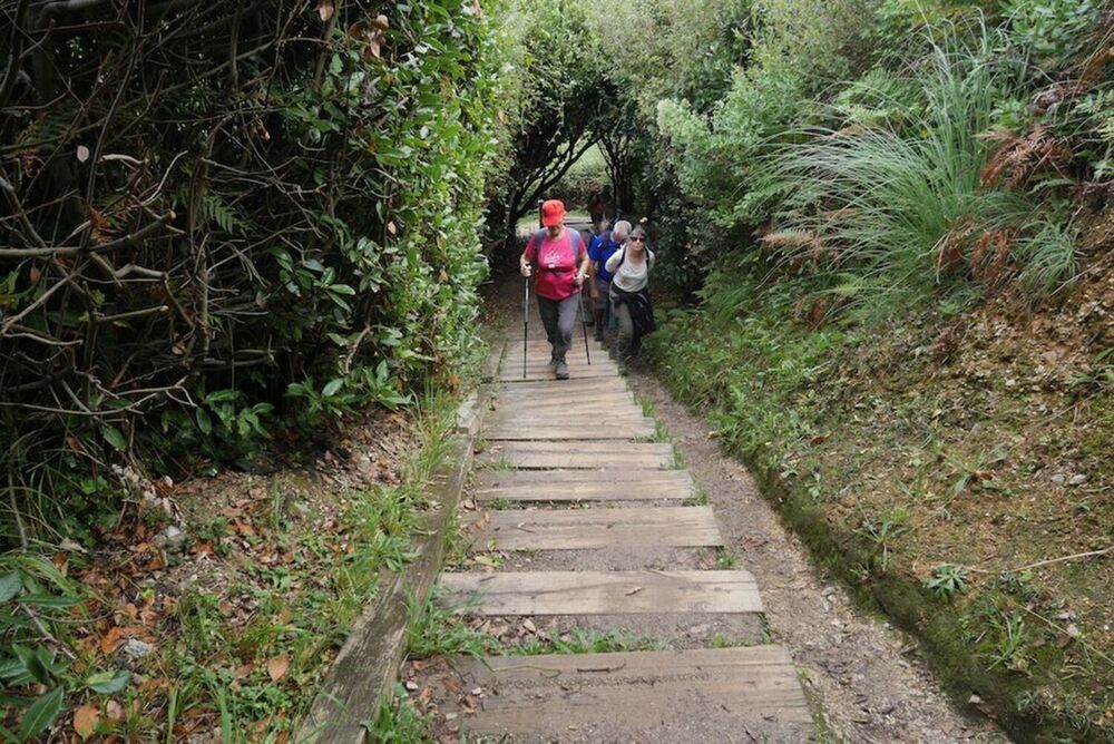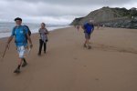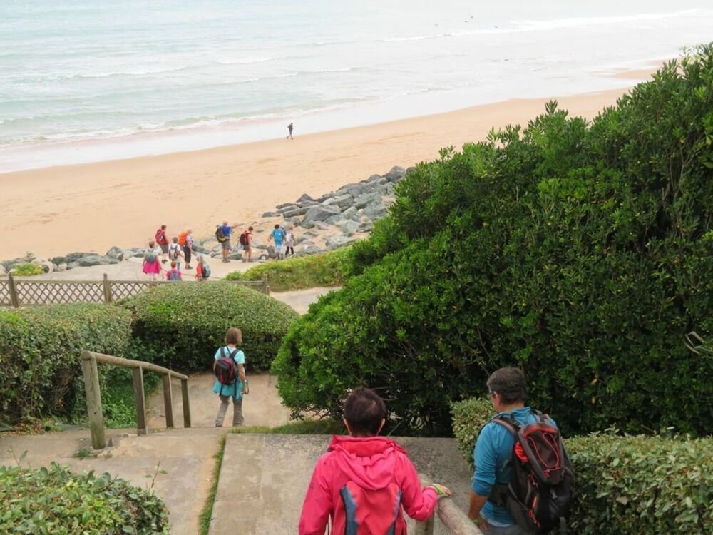 Pour cette deuxième journée, nous partons de SARE vers le littoral, jusqu’à Bidart, qui sera notre point de départ pour une randonnée de 14 km. Le sentier nous fait cheminer entre océan, ruelles pittoresques avec villas typiques des beaux quartiers et végétation dense qui nous offre de véritables arches de verdure. Les grisailles du ciel donnent au paysage des nuances délicates de poudre et d’argent. Les lieux sont magnifiés par cette lumière, et l’une de nos randonneuses ira jusqu’à s’exclamer « Je suis au paradis ! » Le cri du cœur ! ! ! Séduits par la beauté des lieux, nous n’avons pas compté les marches montées et descendues le long du chemin . . . mais elles furent nombreuses ! ! !