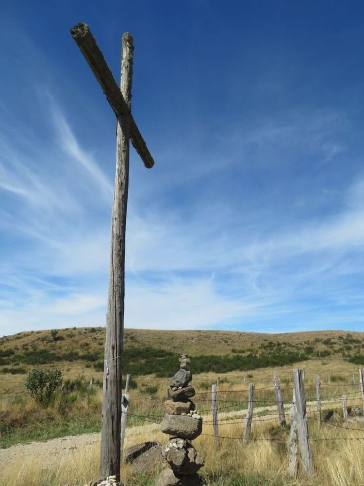 Une impressionnante file de marcheurs s’étire le long de la route jusqu’à l’entrée d’une section du sentier de Compostelle classé au Patrimoine de l’Humanité. Situé sur la Via Podensis, il offre au regard un panorama exceptionnel sur l’immensité des espaces du plateau.