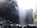 Nous terminons la journée par une autre découverte, celle de la Cascade du Déroc. La cascade abrite un des trésors de l’Aubrac : une petite grotte, dont le spectaculaire plafond est formé d’imposants orgues basaltiques, dont les gros prismes sont remarquables par leur géométrie. Cette grotte aurait été, dit-on, le refuge de brigands dans des temps anciens.